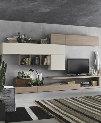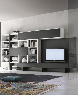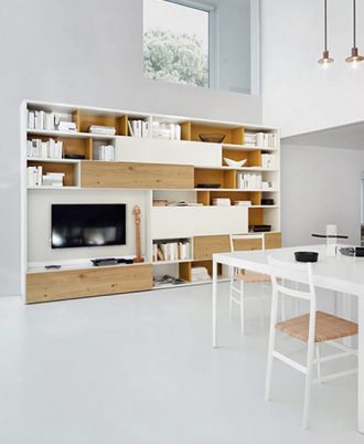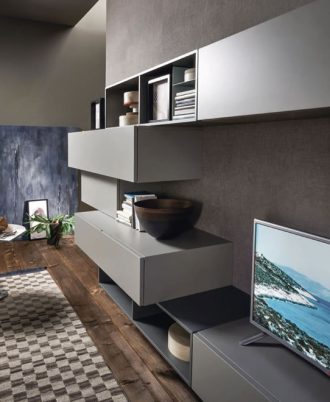 Con Modo la linearità tipica dell'ambiente living contemporaneo, prende una nuova vita grazie alla diversificazione degli spessori delle ante e dei frontali.