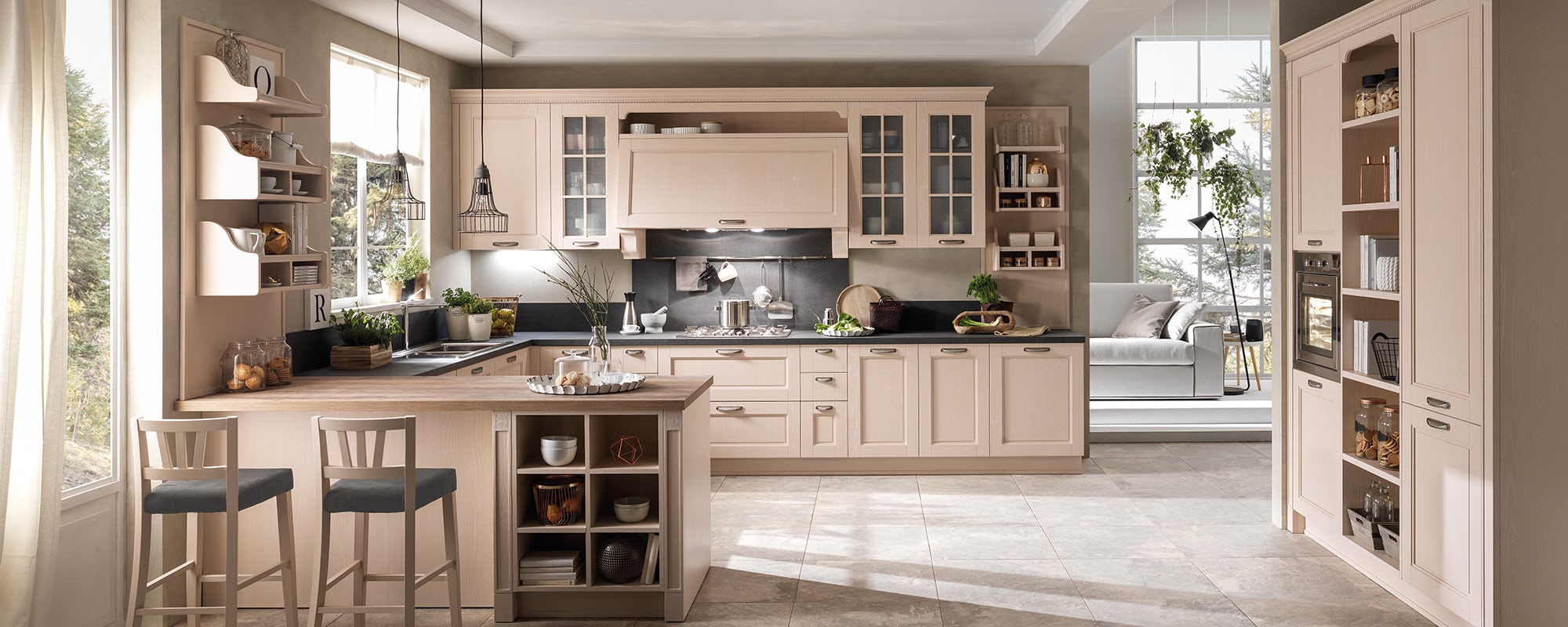La sintesi ideale tra estetica, qualità e praticità:Virginia, coniuga lo stile più tradizionale con l’innovazione delle soluzioni più attuali. Il country-chic trova in Virginia completa espressione: un mix assolutamente amalgamato di atmosfere accoglienti e dettagli unici che rendono gli arredi ricercati ma confortevoli per chi vive la cucina nella quotidianità. Le venature in evidenza, il prezioso fiore intarsiato sul capitello e sull’anta sono richiami a una raffinatezza senza tempo che non rinuncia al calore rustico, ma lo reinterpreta, proponendolo in una versione più tenue e aggraziata.